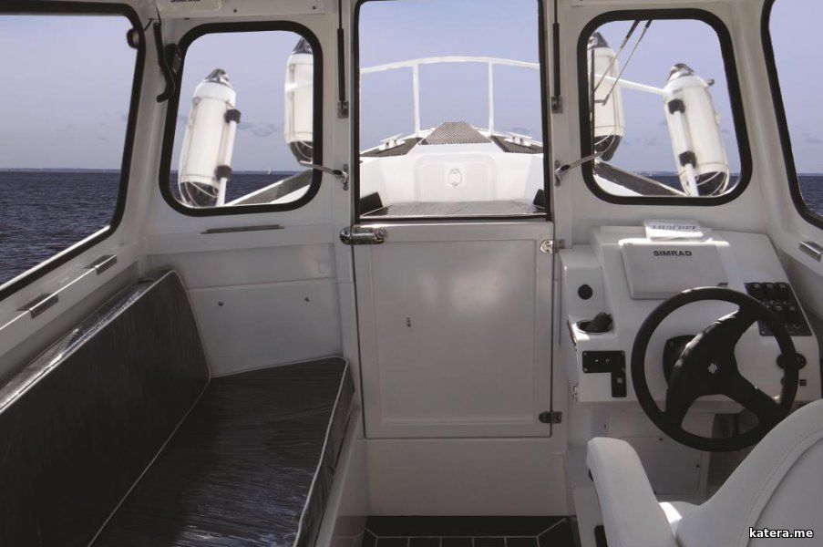 Характеристики Длина габаритная 7,35 м Ширина габаритная 2,45 м Высота габаритная 2,3 м Высота борта на миделе 1,1 м Угол килеватости 17 град. Осадка 40 см Вместимость 7 чел. Рекомендуемая мощность мотора 175–225 л. с. Емкость топливного бака 250 л Грузоподъемность 950 кг Толщина борта 4 мм Толщина днища 4 мм Комплектация ПДУ шестикнопочный с предохранителями 1 шт. Гидравлическая система рулевого управления 1 шт. Рулевое колесо 1 шт. Кресло капитана Grammer с компактной системой амортизации с ходом 80 мм; спинка регулируется от -5 до +20 с шагом в 2,5; рассчитано на вес человека от 45 до 130 кг; наличие обшитых подголовника и подлокотников 1 шт. Розетка 12В 1 шт. Индикатор уровня топлива 1 шт. Стеклоочиститель (дворник) 1 шт. Подстаканник 1 шт. Жидкостной обогреватель с обдувом лобовых и боковых стекол кабины 1 шт. Самоотливной кокпит 2 шт. Помпа ручная 1 шт. Помпа электрическая 1 шт. Трап 3 ступени 1 шт. Утки швартовые 6 шт. Замок двери кабины 1 шт. Контейнер для аккумулятора 1 шт. Переключатель АКБ 1 шт. Топовый огонь 1 шт. Фара-искатель 2 шт. Навигационные огни 1 компл. Туманный горн 1 шт. Привальный брус 1 компл. Бортовые рейлинги 1 компл. Носовые рейлинги 1 компл. Отсеки для хранения вещей 4 шт. Лестница и рейлинги кабины 1 компл. Запирающиеся распашные двери 2 шт. Кринолины 2 шт. Мягкие подушки в кабине 1 компл. Вентилируемые отсеки для хранения вещей в кокпитах (рундуки) 5 шт. Шпигаты 4 шт. Транец для дополнительного двигателя 1 компл. Огнетушитель 1 шт. Аптечка 1 шт. Топливный бак на 250 литров 1 шт. Аноды цинковые 2 шт. |